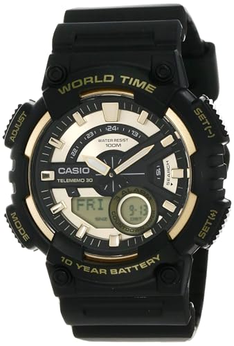 Casio - Casio standard for men - analog-digital resin band watch - aeq-100bw-9av, black band, black/gold, aeq100bw-9av