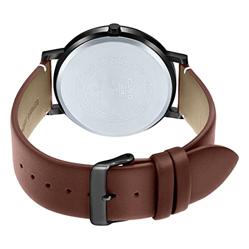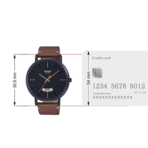 Casio - Casio watch for men mtp-b100bl-1evdf analog leather band black & brown