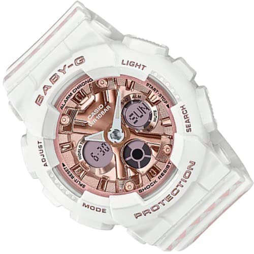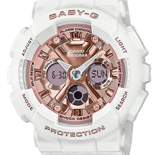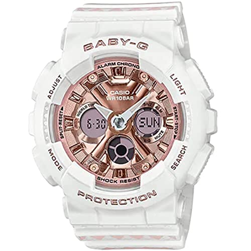 Casio - ساعة بيبي جي للنساء بمينا ذهبي وردي وسوار من الراتنج من كاسيو، موديل BA-130SP-7ADR, أبيض، انالوج-ديجيتال