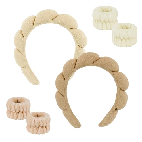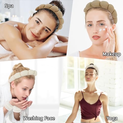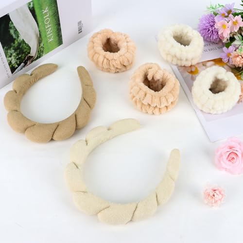 - 【High-Quality Material 】: The puffy spa headbands are made of terry cloth materialto keep hair from getting wet.The Face Wash Wristbands are made of soft coral fleece material, which is fluffy, soft and comfortable to wear.