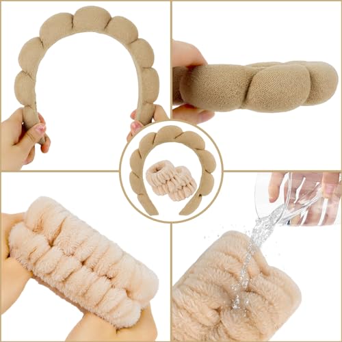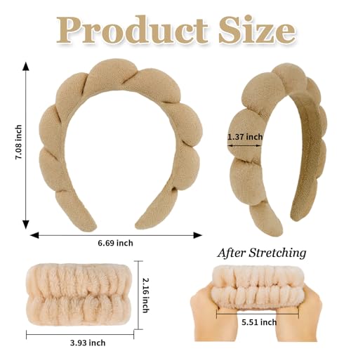 Casoty - Casoty Face Wash Headband and Wristband Set, Puffy Headband for Women Girls, Skincare Headbands for Face Washing Shower Skin Care Yoga