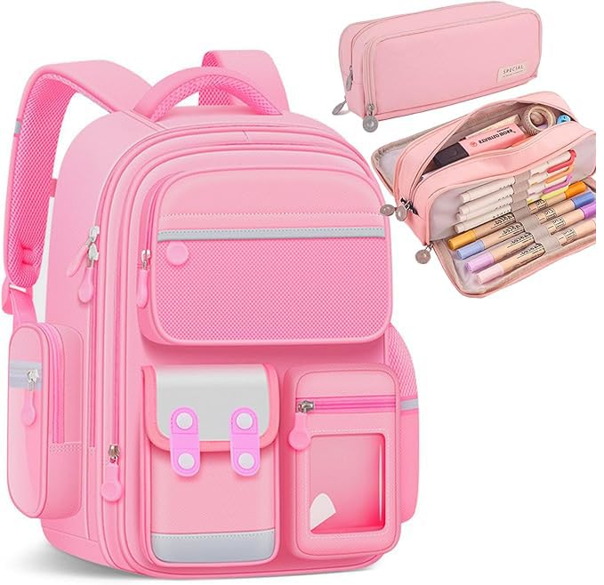 CasRmia - شنطة ظهر مدرسية للبنات من كاسرميا، شنط مدرسية للاطفال تأتي مع مقلمة بسعة كبيرة - لطيفة ومتينة وخفيفة الوزن بسعة كبيرة للطلاب، تصميم مريح، مثالية للسفر والمدرسة، زهري