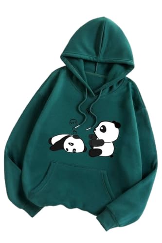 Generic - Casual Panda Hoodie, Green Cotton Hoodie Sweatshirt, Cute Panda Print Design, Unisex XXL with Front Pocket and Ribbed Trim