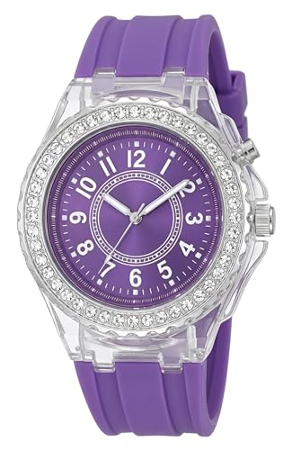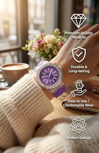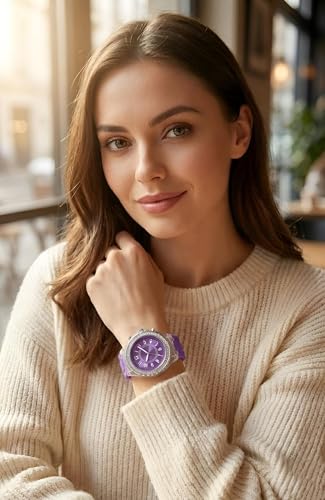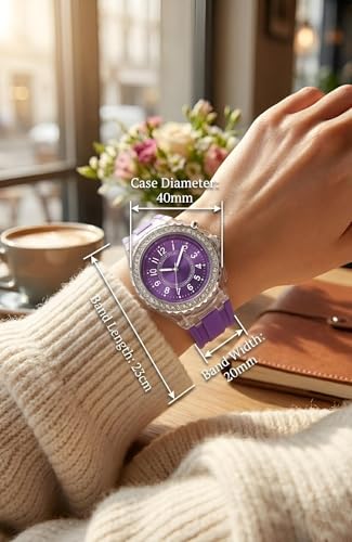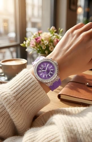 Generic - ساعة كاجوال - ساعة كوارتز للنساء بسوار سيليكون متعدد الالوان واطار كريستالي وهيكل شفاف يجمع بين الأناقة والراحة دون عناء
