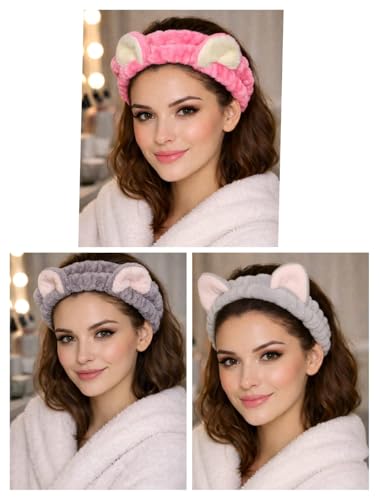 Generic - Cat Ears Velvet Headband Set Of Three Pieces For Skin Care And Makeup - Multicolor