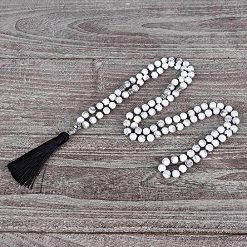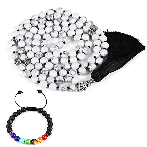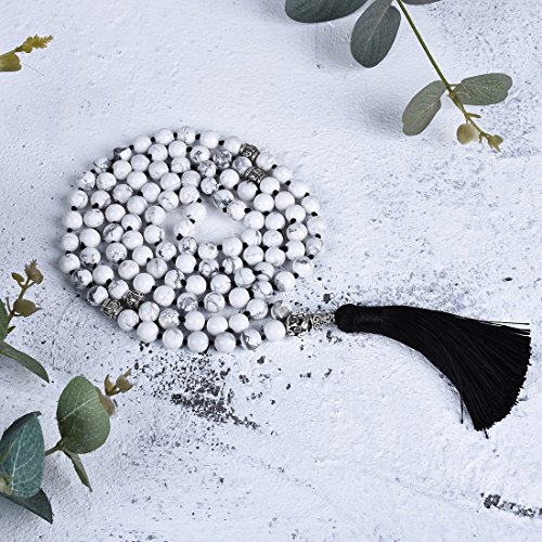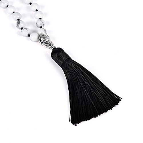 Cat Eye Jewels - 8mm 108 Mala Prayer Long Beaded Necklace 7 Chakra Lava Rock Tassel Pendant Beads Bracelet Necklace for Women Men