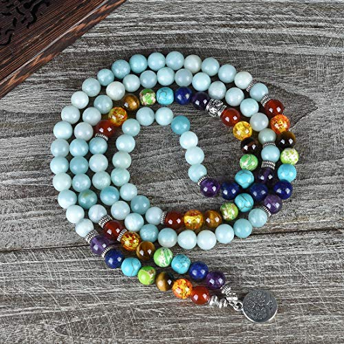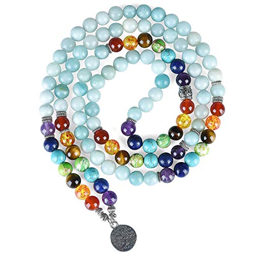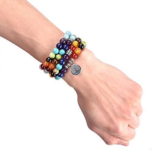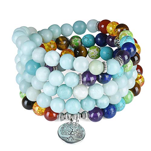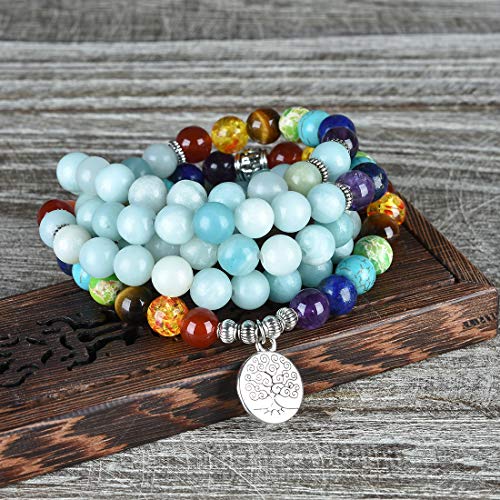 Cat Eye Jewels - سوار شاكرا قياس 8 ملم، احجار طبيعية، جمشت صناعي، خرز مالا 108، طبقات، شجرة الحياة، مناسب للجنسين من كات اي جولز,