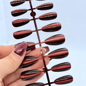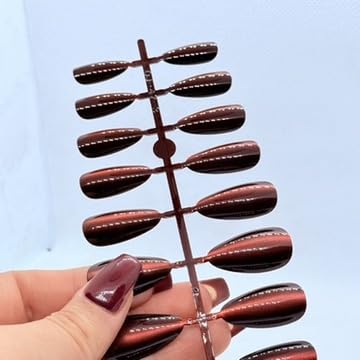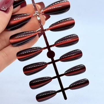 Generic - Cat Eye Press On Nails – 24pcs Almond Shape Magnetic Effect Fake Nails, Glossy Salon Finish, Reusable Stick On Nails in 3 Red Shades (Dark Red)