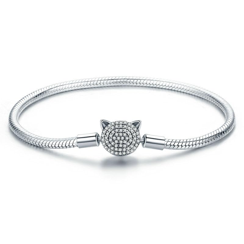 Generic - Cat Face Bracelet – 925 Silver with Zircon Stones, 18 cm