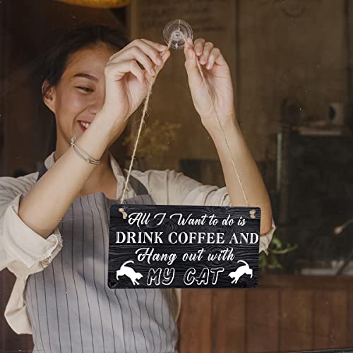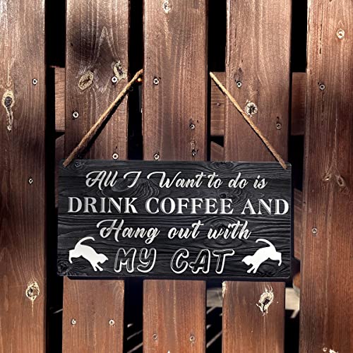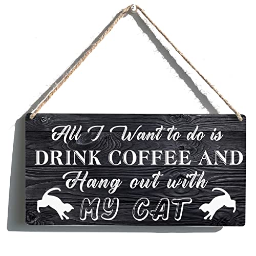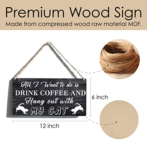 Generic - Cat Lover Gift Farmhouse All I Want to Do is Drink Coffee and Hang Out with My Cat Wooden Hanging Sign Rustic Wall Art Home Decoration 12 x 6 Inches