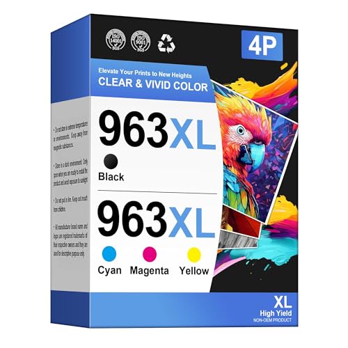 - 【Packaging Contents】Includes four Ink Cartridges: 1x Black 963XL, 1x Cyan 963XL, 1x Magenta 963XL, and 1x Yellow 963XL. Compatible with HP 963 Ink Cartridges (packaging may vary).