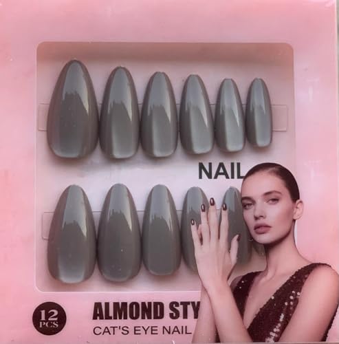 Generic - cats eyePRESS ON gel NAILS-12 pcs Medium Long -easy prsee on- Perfect For Parties, Comes With 1 SHEET DOUBLE FACE - N7