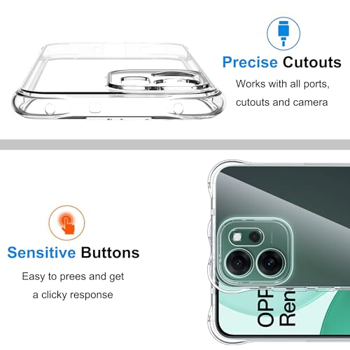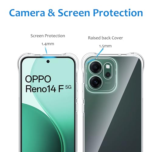 - [التوافق]: جراب الموبايل الشفاف هذا مناسب لموبايل أوبو رينو 14F شبكة الجيل الخامس 5G/ أوبو رينو 14 FS شبكة الجيل الخامس 5G، ليس من السهل أن يصفر بسبب الأشعة فوق البنفسجية، بتصميم ناعم ومريح الملمس.