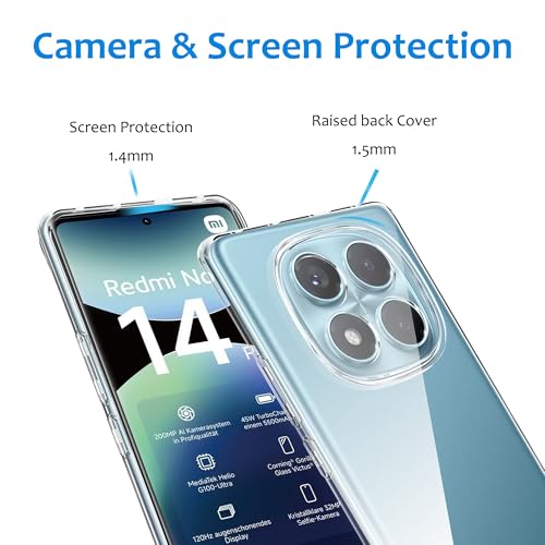- [التوافق] هذا الجراب مصمم لهاتف شاومي ريدمي نوت 14 برو 4G، وهو مصنوع من السيليكون الشفاف مع فتحات دقيقة لملاءمة محكمة على جميع أزرار وعدسات الهاتف.