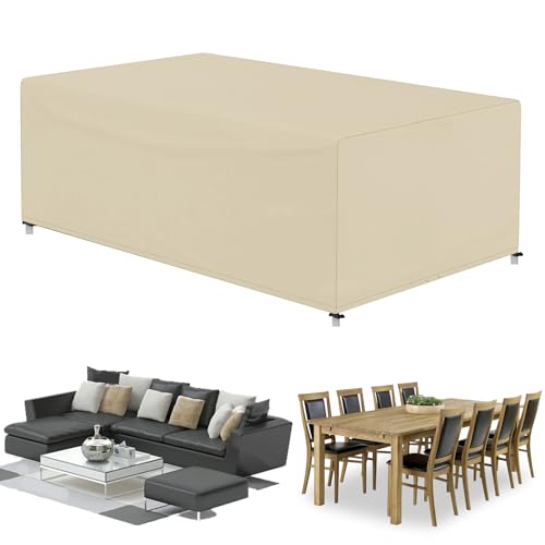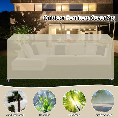 CAWUWE - Outdoor Waterproof Furniture Cover Set, 420D Oxford Patio Table and Chair Covers, Large Beige Sofa Sectional Cover, 250x250x90cm
