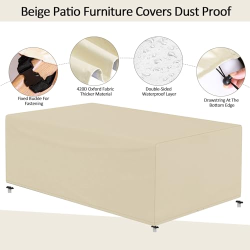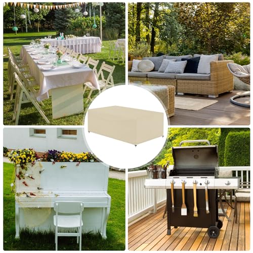 - 【Classic Design】: Our large dust cover for patio tables and chairs is selected in beige. Dust is also less visible on it. The rectangular appearance is very simple and can be used in various occasions.