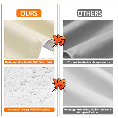 - 【Superior Material】: Utilizing high-quality 420D Oxford fabric, this material offers a thicker and more comfortable feel compared to 210D fabric. This heavy duty patio furniture cover is more durable and resistant to wear and tear, making it less prone to damage.
