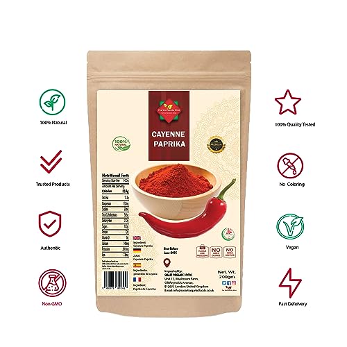 - 𝐏𝐑𝐄𝐌𝐈𝐔𝐌 𝐐𝐔𝐀𝐋𝐈𝐓𝐘 𝐀𝐍𝐃 𝟏𝟎𝟎% 𝐍𝐀𝐓𝐔𝐑𝐀𝐋: We pride ourselves on providing a product that is completely natural, with no additives or preservatives. Our Cayenne Pepper's quality guarantees that you'll have enough spicy goodness to last you a long time, making it a great value for money. Our Cayenne Pepper contains no additives or preservatives, providing you with a pure and natural seasoning.