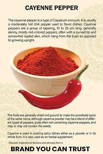 - 𝐀𝐁𝐎𝐔𝐓 : Cayenne pepper, also known as bird pepper, Guinea spice, and red pepper, is a slightly sweet and hot pepper in the capsicum annuum species. It is the secret ingredient that chefs use to spice up their recipes - Cayenne Pepper. Its hot and zesty profile makes it suitable for a wide variety of dishes, from spicy curries to mouth-watering grilled meats. Elevate your culinary creations with this versatile and high-quality pepper.