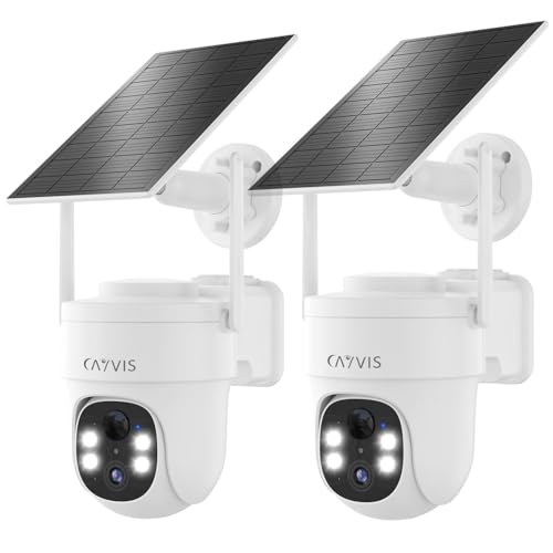 CAYVIS - كاميرا مراقبة واي فاي لاسلكية خارجية من كايفيس 3MP 2.4G PTZ مع لوحة شمسية كشف الشكل البشري الحركة رؤية ليلية ملونة 20 متر صوت ثنائي الاتجاه مقاومة للماء IP66 قطعتان