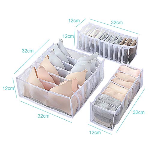- VARIES SIZE AND FLEXIBILITY: 3-piece storage space meets different needs of organization, we offer 6 cells for bras, 7 cells for ties, 11 cells for socks or other accessories.