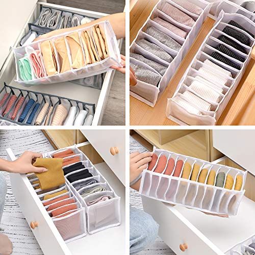 CBOO - CBOO Drawer Organiser for Underwear, Washable Closet Socks and Underwear, Storage Box for Bra, Ties (White, Group)