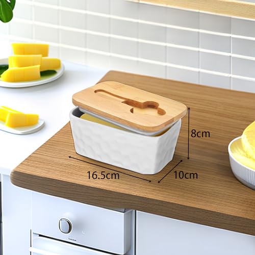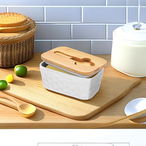 - 【Great Sealing】The wooden lid of the fridge butter dish is equipped with a removable double silicone seal to prevent food from spoiling and keep the butter fresh and nutritious. The butter can be stored for a long time at room temperature. Ceramic glass butter dish with bamboo lid can block odors from the refrigerator or other food present in the kitchen.