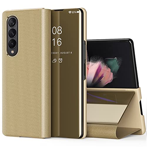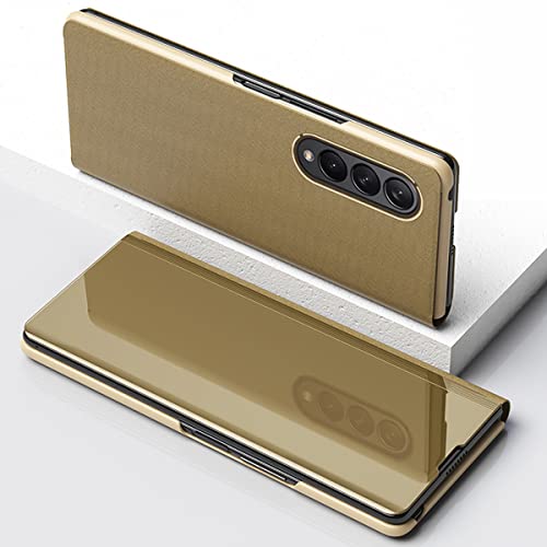 CCSmall - CCSamll Mirror Case for Samsung Galaxy Z Fold4 5G with Kickstand, Luxury Clear View Smart Display Flip Case Ultra Thin with Wireless Charging Phone Cover for Samsung Galaxy Z Fold 4 QH Golden