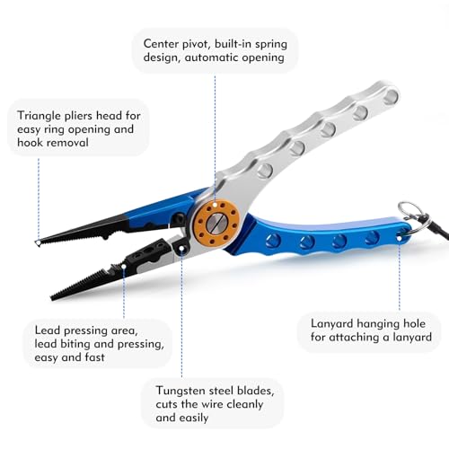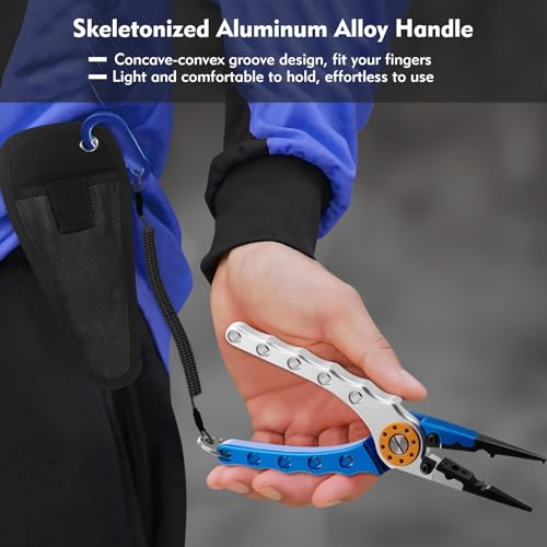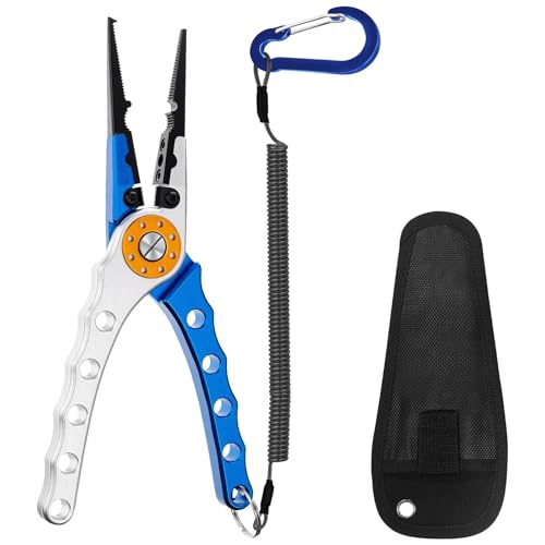 - CORROSION RESISTANT- The fishing pliers are made of stainless steel and aluminium alloy for excellent saltwater resistance and corrosion resistance, and can be used in both saltwater and freshwater, and are coated with a polymer coating for extra protection, allowing you to use them for a long time.