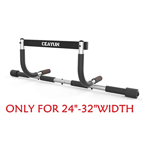 - Easy to Assemble: The CEAYUN pull up bar uses leverage to stay in place. No screws and no damage to door. Adjustable design easily fits on any standard doorway 24" to 32".