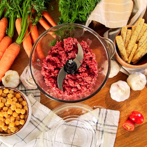 - 500W electric chopper for mincing, chopping and chopping all types of meat and vegetables with professional, fast and even results. 4-blade stainless steel blade, which increases hardness and maintains sharpness longer to shred even the toughest foods.
