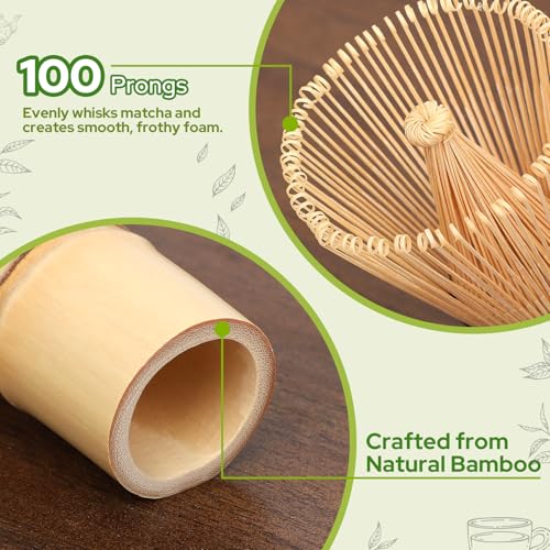 - 【100-Pole Bamboo Whisk】 Our traditional fouet matcha has 100 teeth, designed to create a smooth, foamy foam. Handcrafted by skilled craftsmen, it ensures durability and a rich, soft tea experience every time.