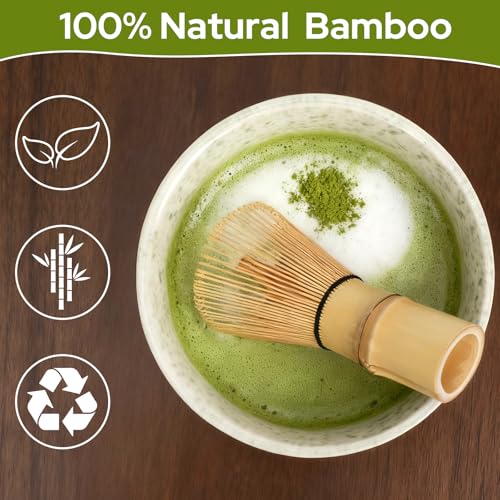 - 【Natural Bamboo Material】 Our matcha whisk (chasen) is made of 100% natural bamboo and is environmentally friendly and durable. The smooth surface and ergonomic handle provide a comfortable, lightweight grip for easy and frothy matcha preparation.