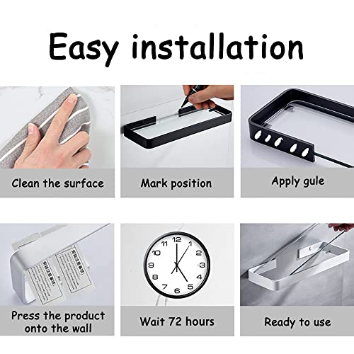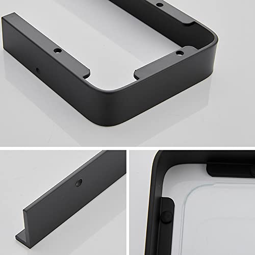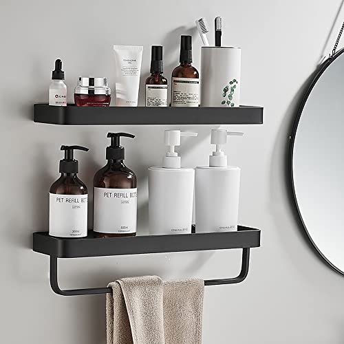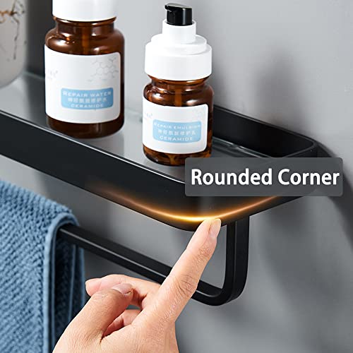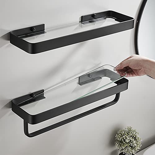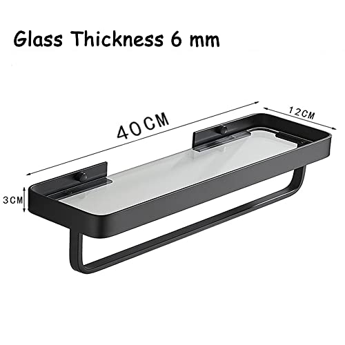 Celbon - 40 cm Bathroom Shelf - Glass Shower Shelf - Wall Mounted - Black (with Towel Holder)