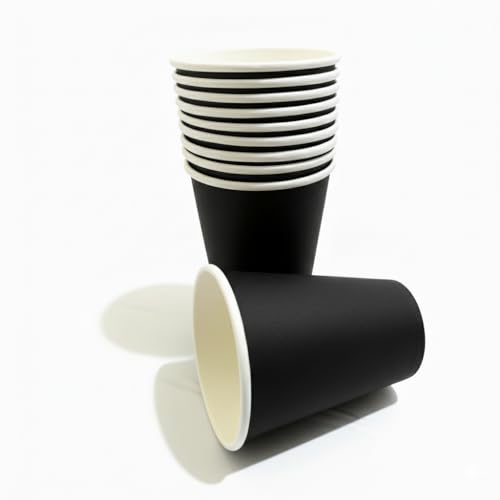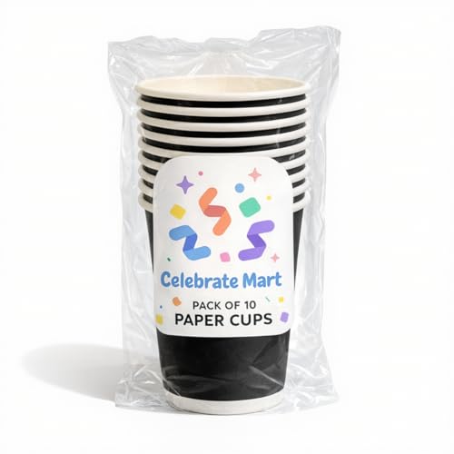 Celebrate Mart - Disposable Paper Cups for Beverages — Food-Grade Paper Drinkware for Parties, Events, Celebrations and Everyday Use (10, Black, 8 OZ)