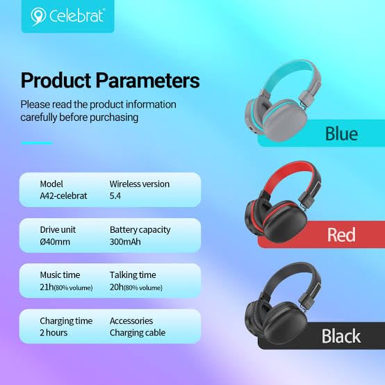 - Celebrt A42 Pure Audio Stereo Wireless Bluetooth Headset, ANC Bluetooth Wireless 5.4 Wavm Bluetooth Headphones with External Microphone Supports SD Cards & AUX Audio Input