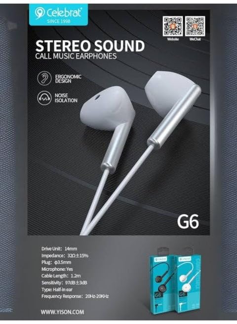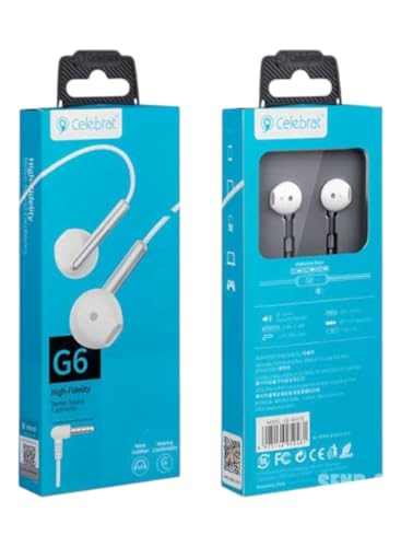 Generic - سماعات أذن سلكية ستيريو CELEBRT- G6، سماعات أذن سلكية داخل الأذن مزودة بميكروفون (ميكروفون) صوت نقي مع ميكروفون بتصميم مريح عملي للارتداء على الهواتف المحمولة لون ابيض