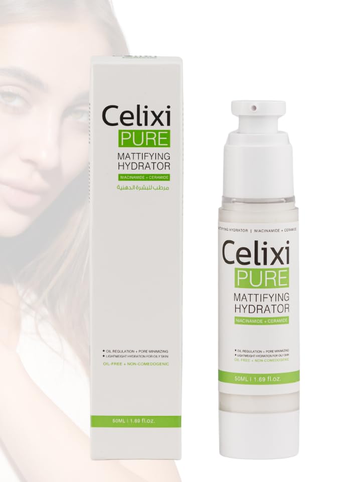 Celixi - مرطب بيور مات من سيليكسي مع النياسيناميد والسيراميد، مرطب خالي من الزيوت للبشرة الدهنية والمختلطة، 50 مل، لا يسبب كوميدوجينيك ويقلل المسام