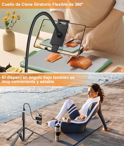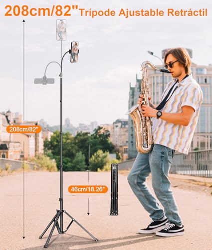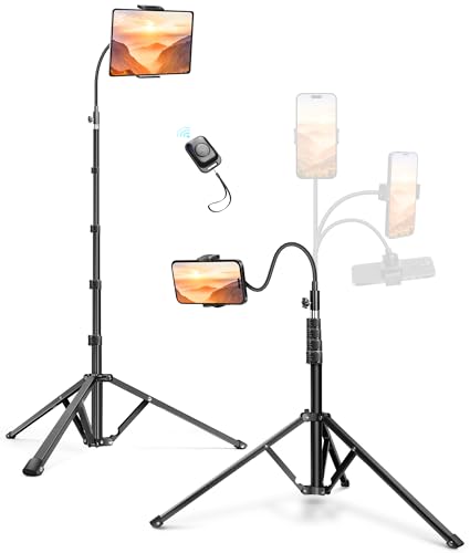 Eocean - Cell Phone Tripod, 208cm/82" Tablet Tripod with Flexible Gooseneck and Remote Control, Aluminum Travel Tripod for iPhone/iPad/Android, Portable Tripod for Video Recording
