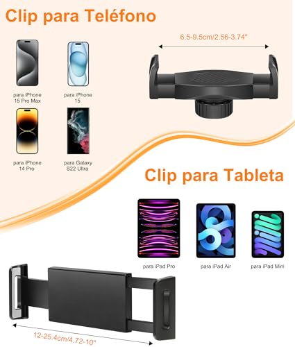 - 【Phone Holder + Tablet Holder】Tripod for cell and iPad adopts a dual clamp configuration, and the phone holder(6.5-9.5cm/2.56-3.74") and tablet holder(12-25.4cm/4.72-10") with silicone protective pad are suitable for most mobile phones and tablets. Tripod for iPhone 15 Pro Max/iPhone 15/iPhone 14/iPad Pro/iPad Air etc.