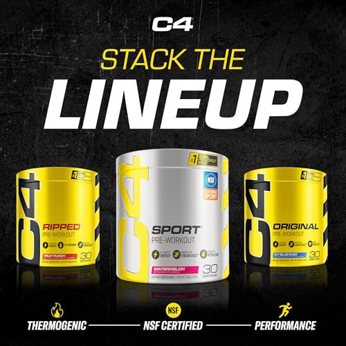 - مسحوق ما قبل التمرين C4 سبورت من سيليوكور، مكمل غذائي بطعم فاكهة البنش، 30 حصة