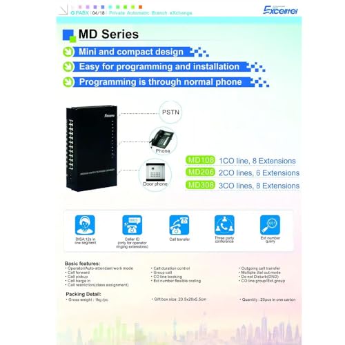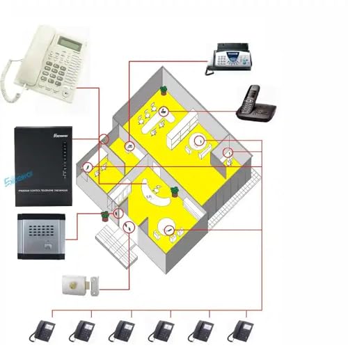 Generic - نظام سنترال كامل للاتصال الداخلي، مع هاتف مكتبي ووحدة تحكم رئيسية، أسود (سنترال 6 خط + 4 عدة تليفون)