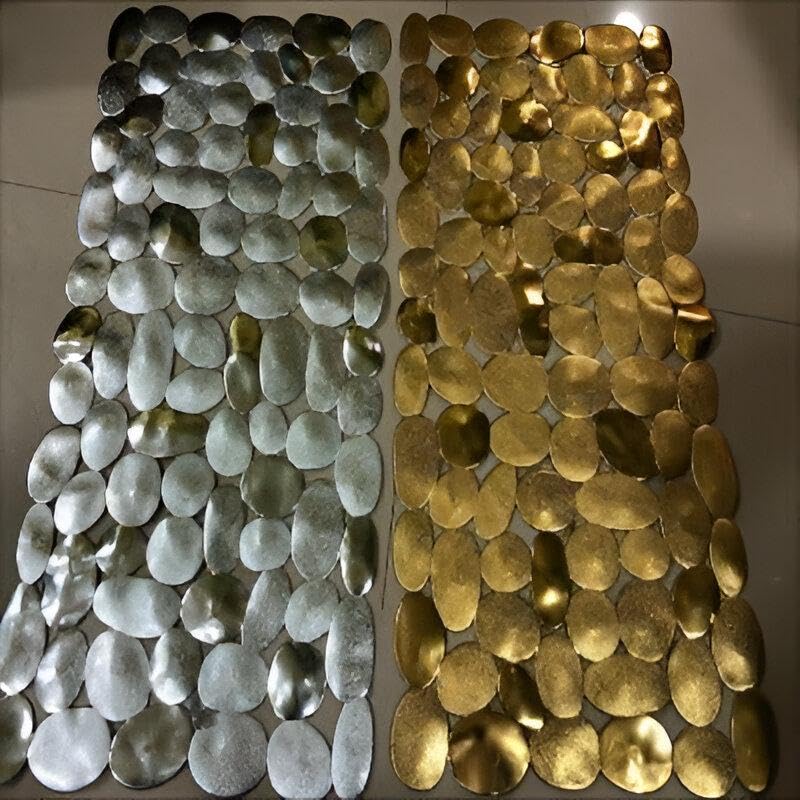 - The durable bath mat features a gravel mimic design with an erratic texture on its surface, providing excellent slip resistance. Unlike traditional solid bath mats, these mats have drain holes that make it easier to circulate water, improving safety during use.
