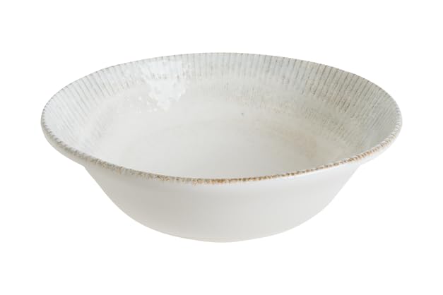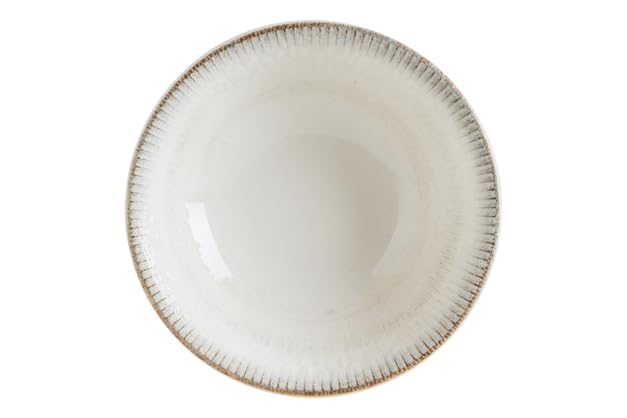 - ELEGANT DESIGN: Features a beautiful white glazed finish with distinctive brown rim detailing and textured ridged edge pattern that adds visual interest to any table setting