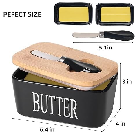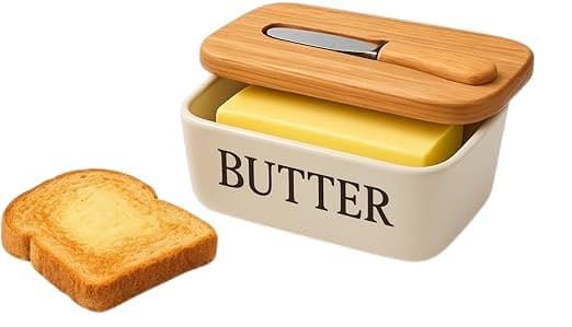 Generic - Ceramic Butter Container with Wooden Lid and Integrated Knife – A Touch of Elegance to Your Table.