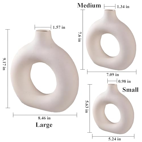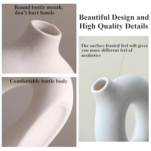 - The distinctive donut-shaped design with gaps in the middle enhances the luxury of the set, and makes it an innovative piece of art combining simplicity and complexity, allowing you to see the flowers clearly and spectacularly, which gives the place life and a touch of sophistication. The frequent use of these vases reflects artistic taste and attention to detail, and makes them suitable for decorating living rooms, salons, or even offices, to give an atmosphere of calm and contemplative beauty.