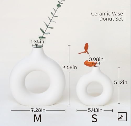 Generic - Ceramic Flower Vase Set of 2, Decorative Vase for Room for Pampas Grass, Minimalist Flower Vase for Coffee Table, Centerpieces, Kitchen, Fireplace, Birthday, Wedding (M+S, White)