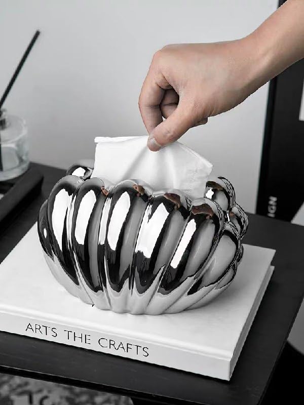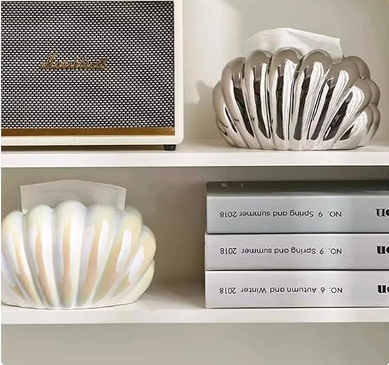 Generic - Ceramic Shell Shaped Tissue Holder for Living Room | Stylish Tissue Box for Office Desk| Premium Tissue Holder | Stylish Tissue for Bedroom (silver)