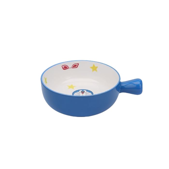 - DESIGN FEATURES: Ceramic soup bowl with convenient side handle, featuring a charming blue exterior and white interior with decorative star pattern
