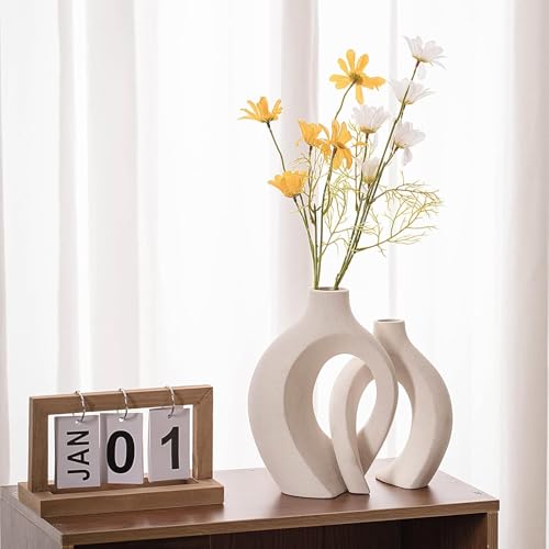 Generic - Ceramic Vases for Home Decor, Boho Off-White Mini Flower Vase, Modern Decorative Simple Donut Vase for Living Room, Dining Room, Office, Entryway, Bookshelf, Coffee Table Decor